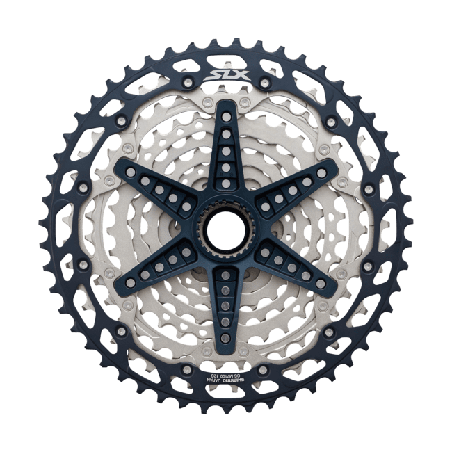 With its BEAM SPIDER construction, the SLX M7100 12-speed cassette shaves weight while increasing SHIMANO’s MTB gearing range another gear. Using SHIMANO’s new MICRO SPLINE freehub body and HYPERGLIDE+ tooth profile, these 10-45 and 10-51T cassettes deliver advanced shifting performance.